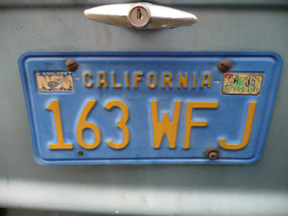 Kalifornijskie tablice. Naklejka rejestracyjna po prawej stronie wskazuje na ostatnią rejestrację w 1985r., czyli Saab stał nieruszany od 31 lat!