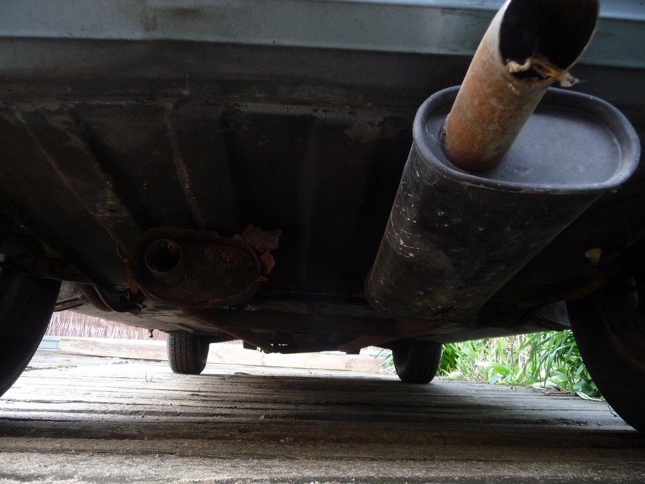Układ wydechowy dość mocno przerdzewiały, zresztą mamy podejrzenia, że nieoryginalny.