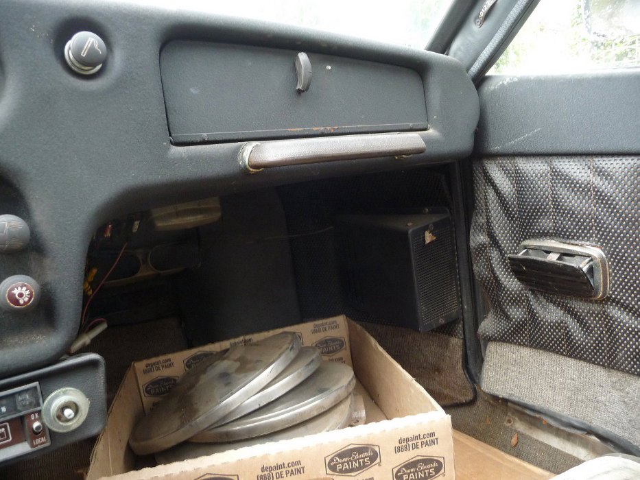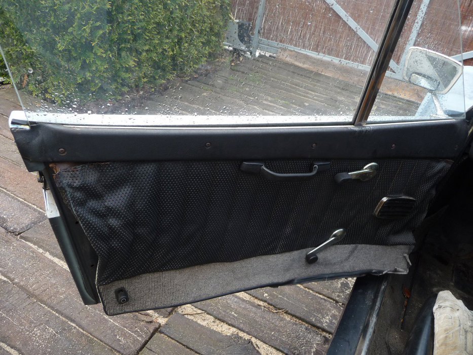 Tapicerka w słabym stanie. Ciekawostka - po lewej u dołu jest dźwignia do zamykania drzwi na zamek. Dość nietypowe miejsce.