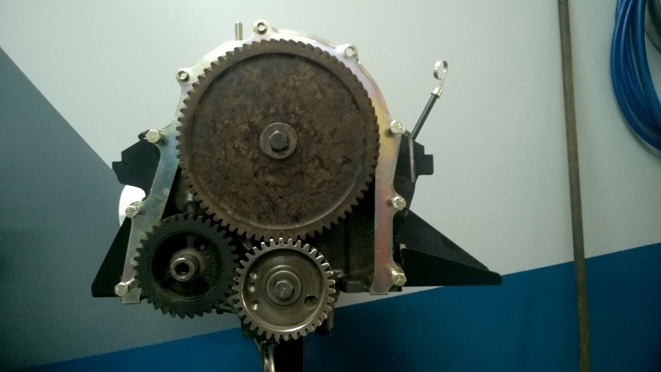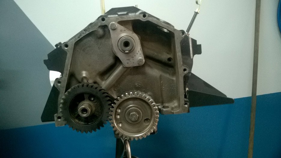 Następnie założyłem blachę na blok i przykręciłem koło zębate wałka rozrządu.
