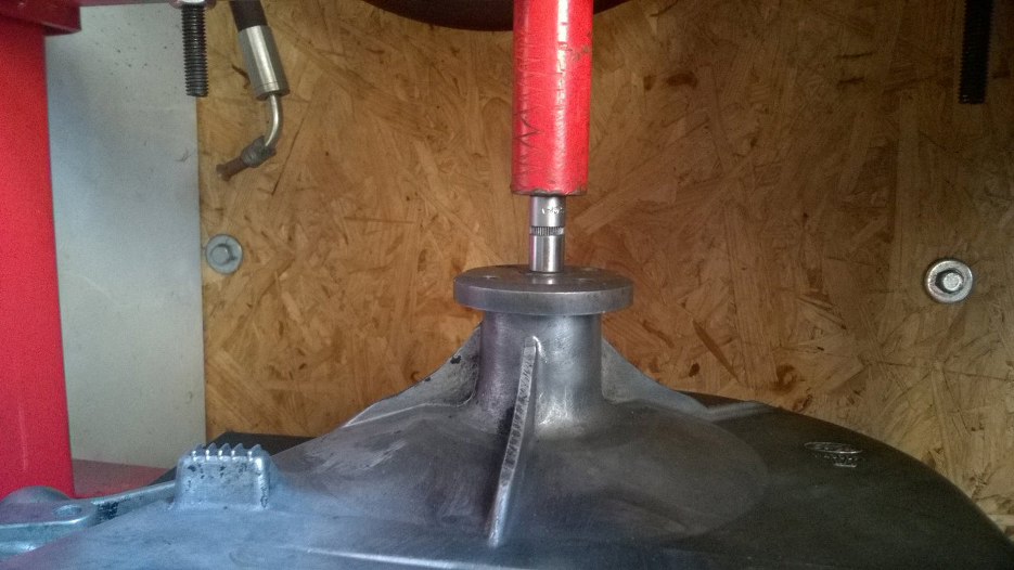 Próba była nieudana. Zatem poszedłem z tym do prasy :) Przy okazji - zwróć uwagę na żeberko wzmacniające obudowę łożyska - jest zeszlifowane. O tym później.