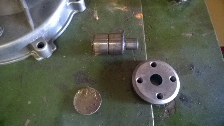 Silnik na chwilę zdjąłem ze stojaka - wałek wkładany jest od strony koła zamachowego (żeby nie powiedzieć nieelegancko). Od razu założyłem zaślepki obu wałków.
