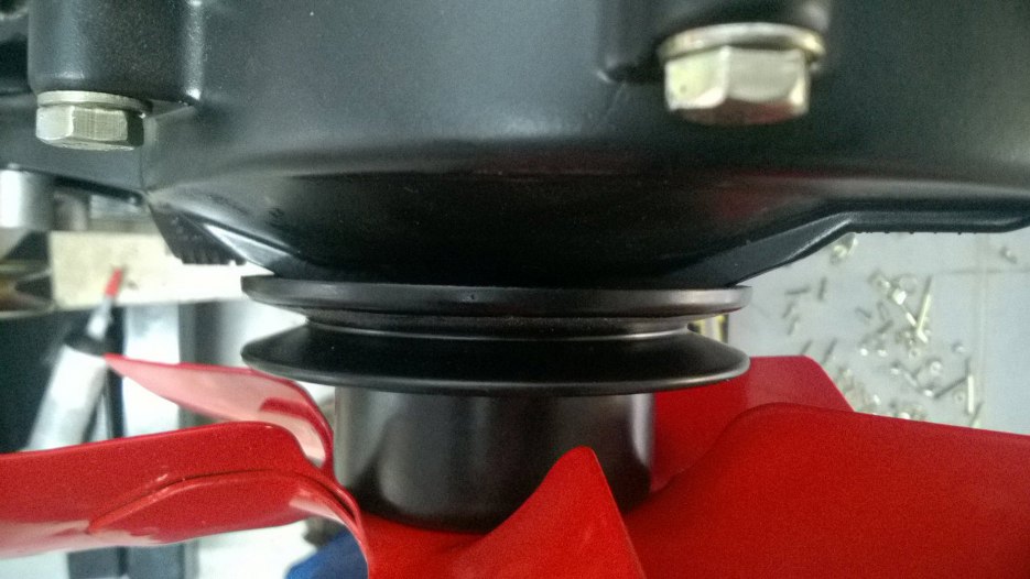 Odwróciłem silnik i przykręciłem kolejne koło pasowe.