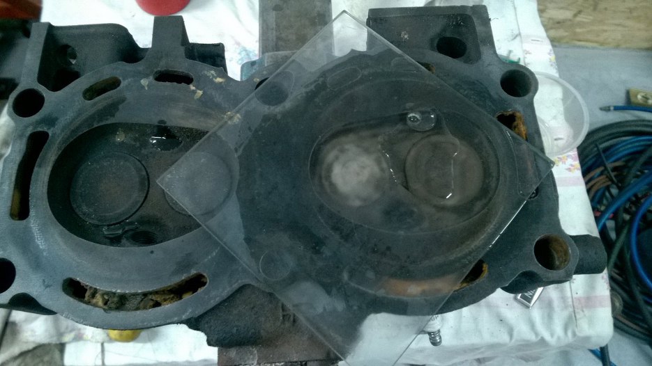 Oczyściłem jedną komorę spalania w głowicy, żeby zmierzyć jej pojemność.