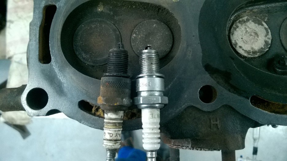 Przy okazji odkryłem, że wkręcone były złe świece - za długie. Za mocno wystawały poniżej płaszczyzny głowic. Chociaż w sumie może 1.5 ma niżej tłoki? Muszę to sprawdzić. W każdym razie na pewno do obecnej geometrii silnika takie świece nie będą pasować.