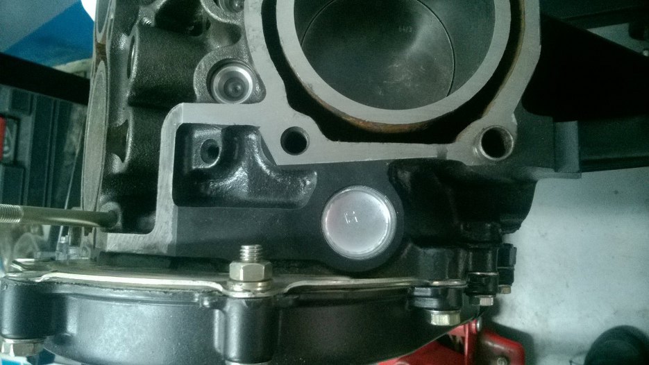 Tymczasem w garażu... Nie chciałem wkładać tu starego króćca, bo zaślepka gumowa była koszmarnie sparciała, a nową podobną znaleźć byłoby bardzo trudno. Poza tym króciec mógł przeciekać. Po poszukiwaniach udało się zlokalizować zaślepkę od głowicy ze zdaje się 3.8l z chryslera, co prawda o większej średnicy (o jakieś 0.25mm?), ale nie jest to problem, którego duży młotek by nie rozwiązał :)