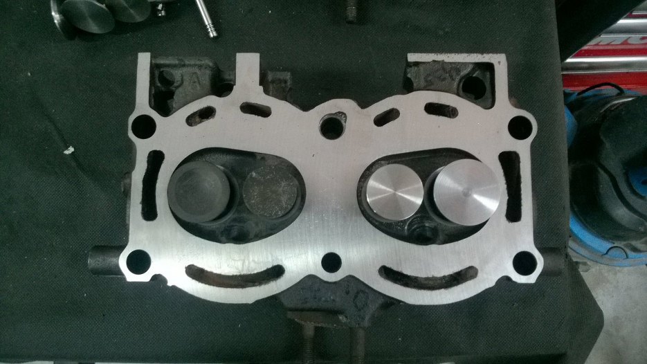 Po planowaniu głowic (tylko wyrównanie płaszczyzny) obrobiłem komory spalania. Na tyle miałem odwagę... Saabowa instrukcja pokazuje, że więcej można, ale oni robili pod 200 koni z tego silnika, pytanie na jak długo... a ten ma trochę pojeździć. Bałem się, że będą bardzo cienkie ścianki.