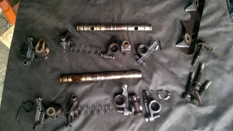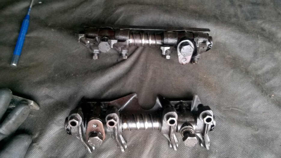 Pora na ośki z dźwigienkami zaworowymi. Stan wyjściowy na zdjęciu. Nie za czyste, ale tragedii nie ma.
