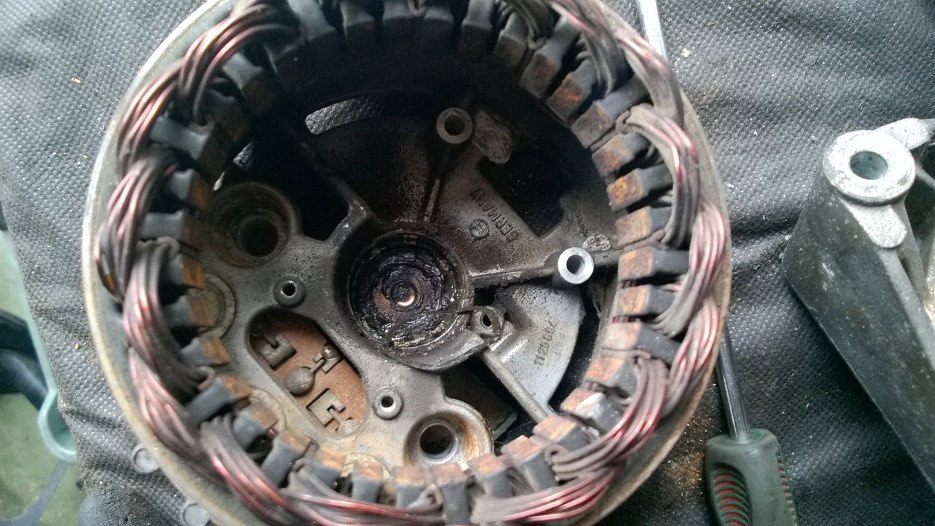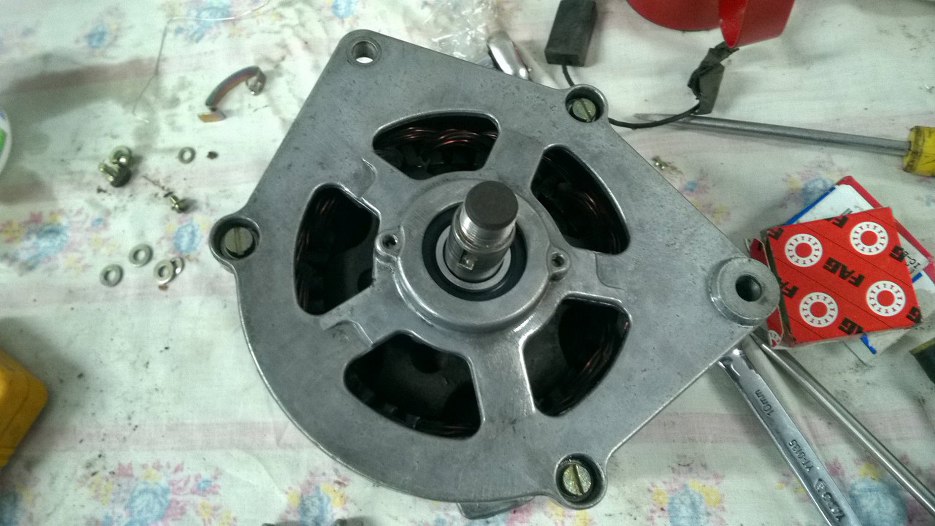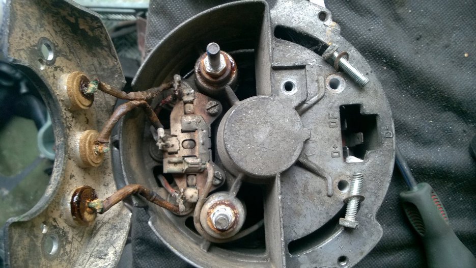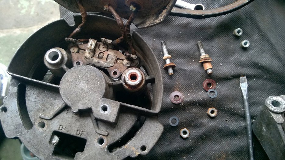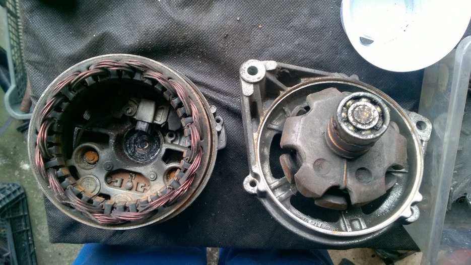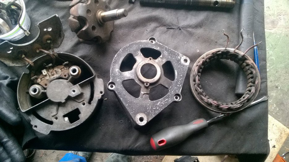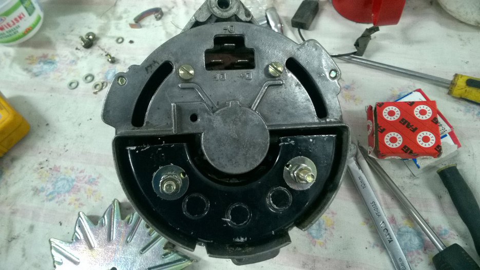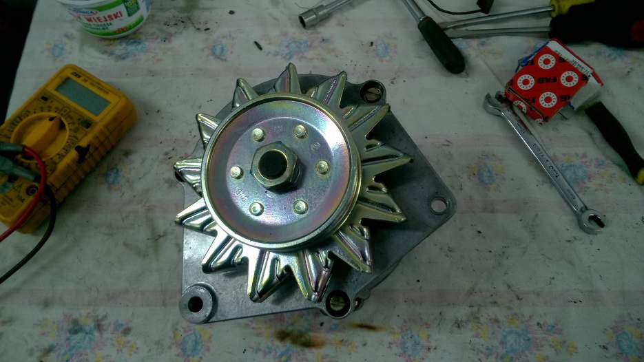 Silnik chwilowo zostawmy, weźmy się za alternator. Tak wygląda stan "przed". Fajnie zachowana naklejka - postaram się ją zachować.