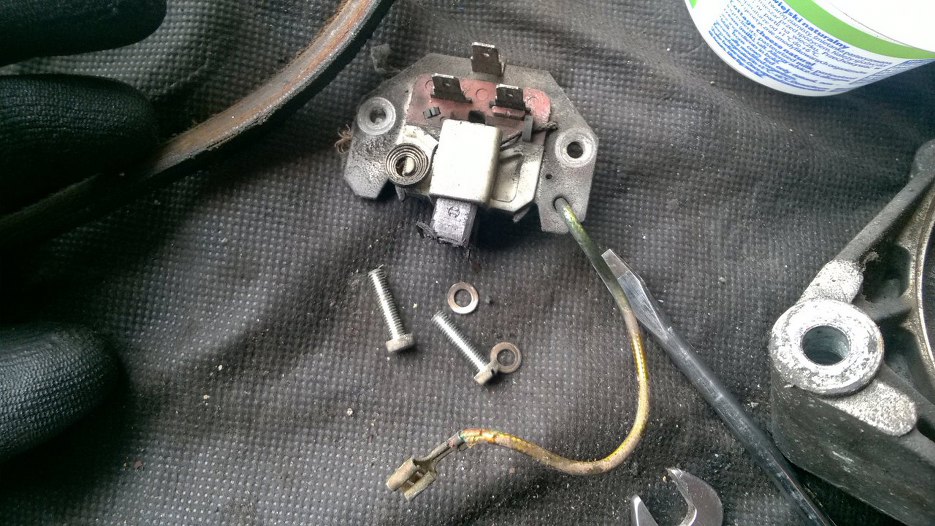 Zdjęty szczotkotrzymacz. Żeby go zdjąć, musiałem odlutować kabelki.