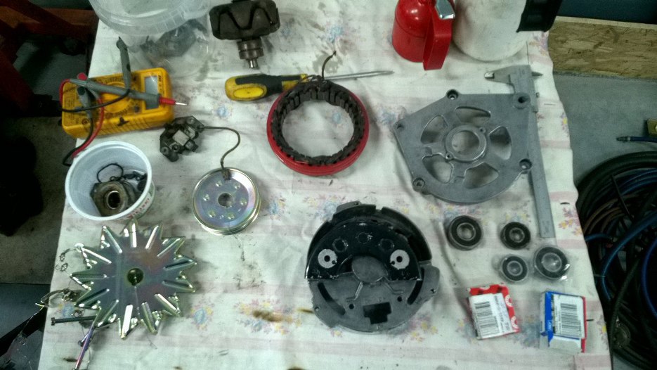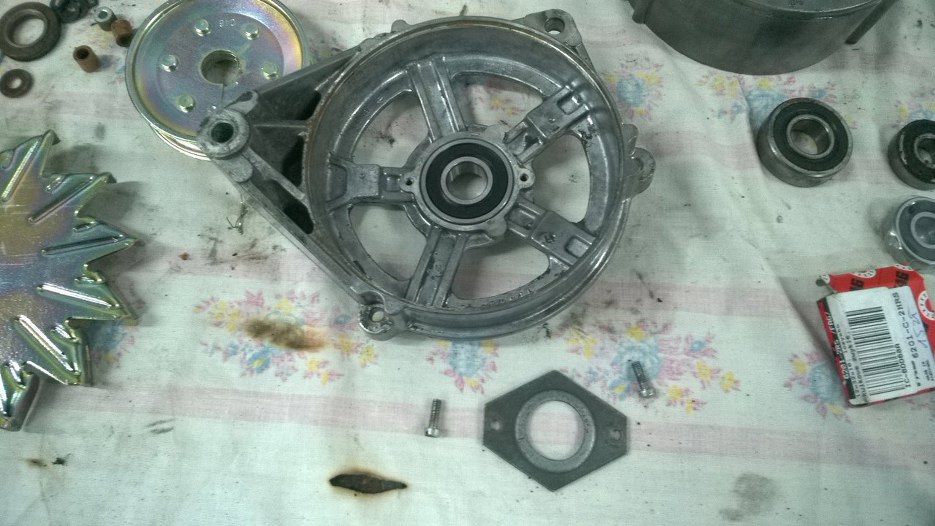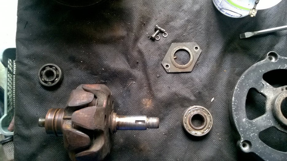 Wirnik w środku, obudowa zamknięta. Kręci się idealnie na nowych łożyskach, nic nie ociera.