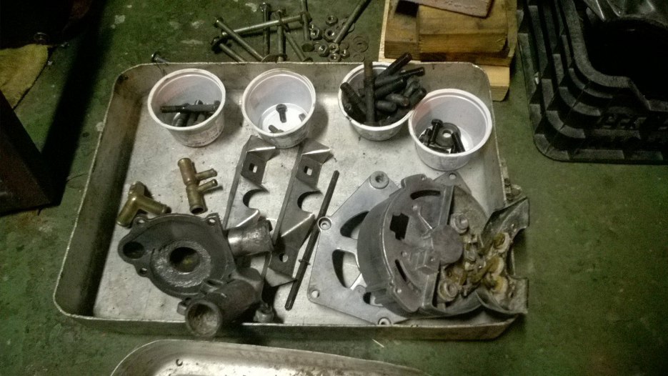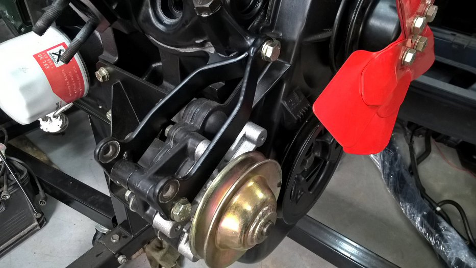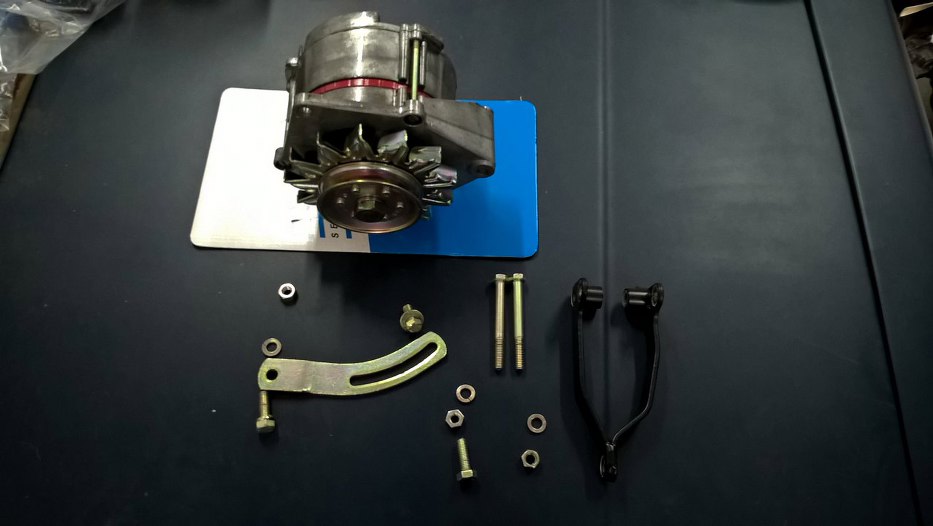 Przygotowałem alternator i jego mocowania. Mocowanie jest czarne, napinacz ocynkowany - mniej więcej do tego doszedłem po umyciu części. Staram się, żeby wszystko miało takie wykończenie jak było oryginalnie.