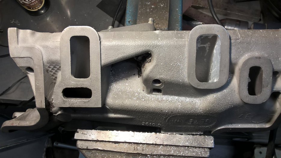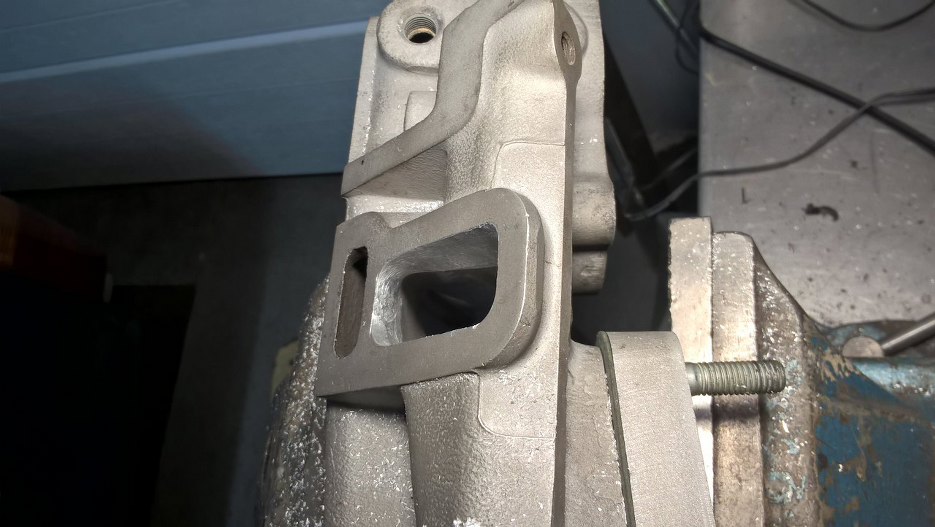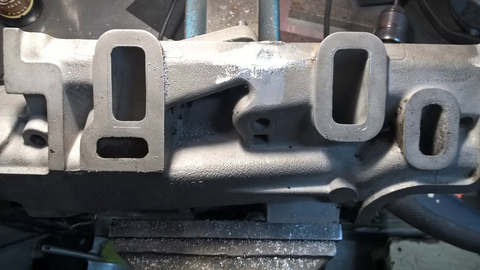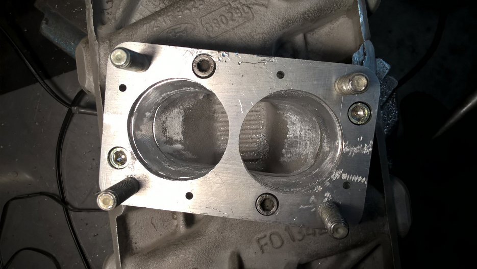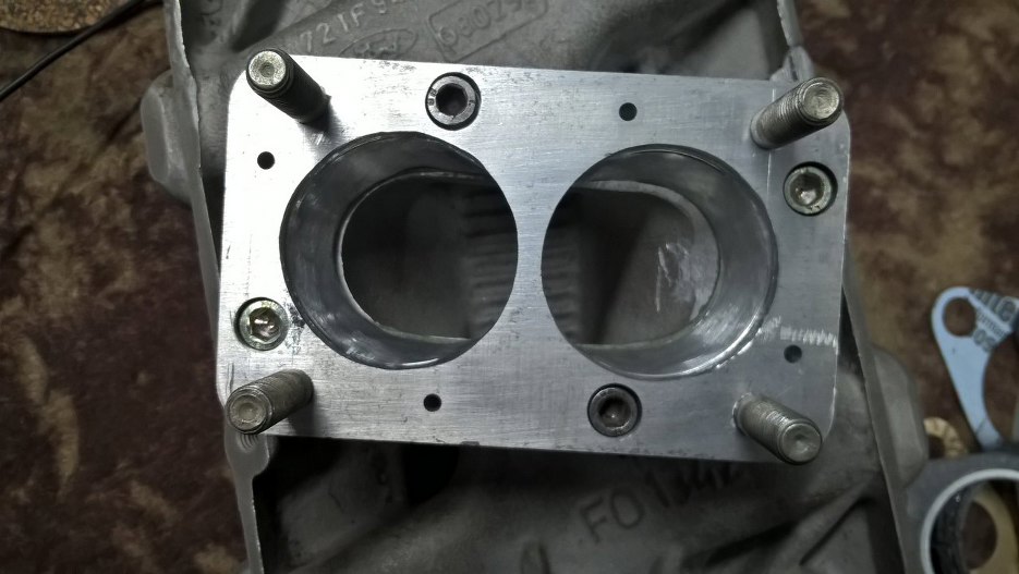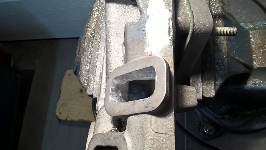 Zdjąłem jeszcze tą przejściówkę, żeby złagodzić załamania wewnątrz kolektora. Powinno być sporo lepiej. Przy okazji można zobaczyć że śruby mocujące przejściówkę pod nowy gaźnik zostały dobrze wywiercone dopiero za drugim podejściem :). Na szczęście nie będzie tego widać.