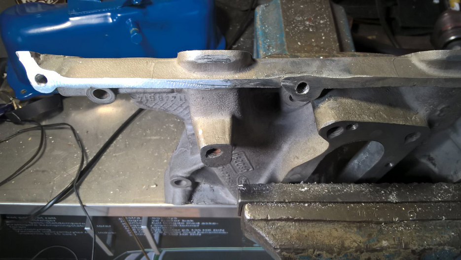 Zanim zacząłem przerabiać kolektor wyciąłem najgorsze otwory pod śruby pokryw zaworów i dałem do zaspawania. dzięki temu mam teraz w tych miejscach świeże aluminium. Ale muszę mieć otwory...
