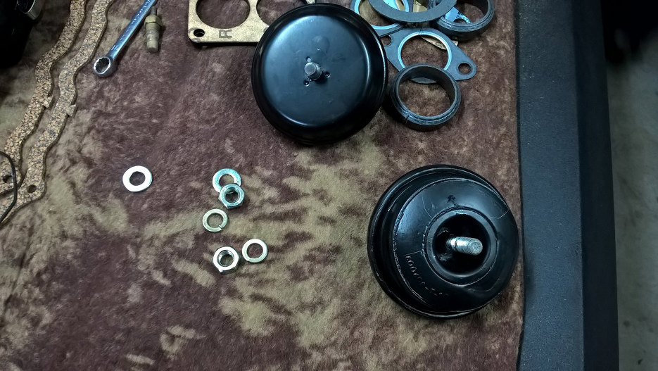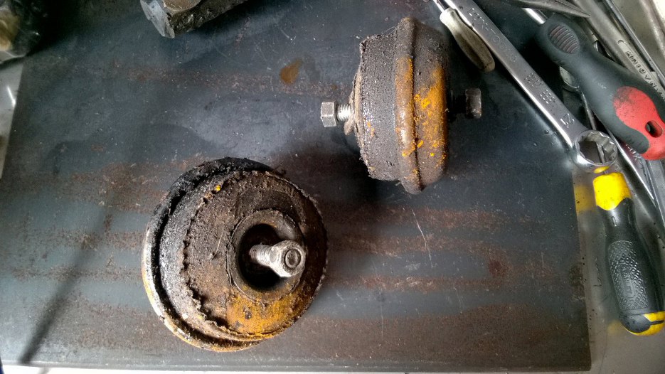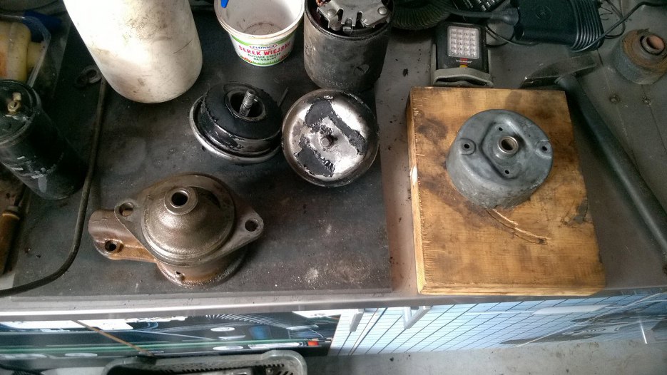 Dobrze. Kolektor dolotowy założony, trzeba ogarnąć trochę drobiazgów. Przy okazji przywiezienia auta (tak, trafiła do mnie też reszta samochodu, ale to historia na później) dostałem trochę części, m.in. poduszki silnika. Nie wyglądały zachęcająco, ale guma w nich jest sztywna, więc raczej będą dobre. No ale takich przecież nie przykręcę...