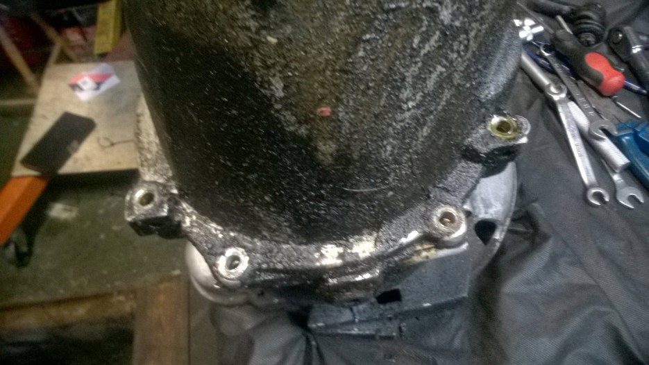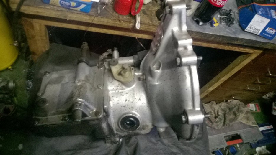 Pora sięgnąć głębiej - odkręciłem śruby łączące skrzynię biegów z obudową sprzęgła i mechanizmu różnicowego.