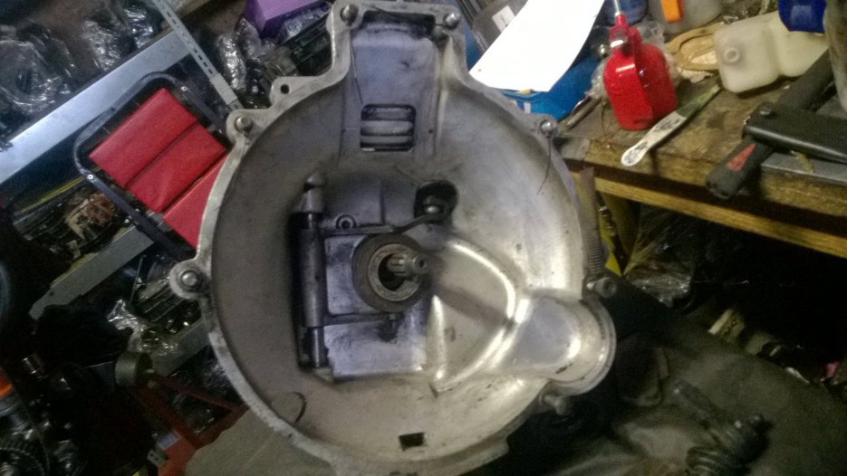 To też w każdym razie wykręciłem. Odkręciłem też śliczną, aluminiową zaślepkę otworu w obudowie sprzęgła.