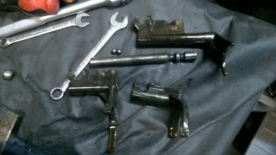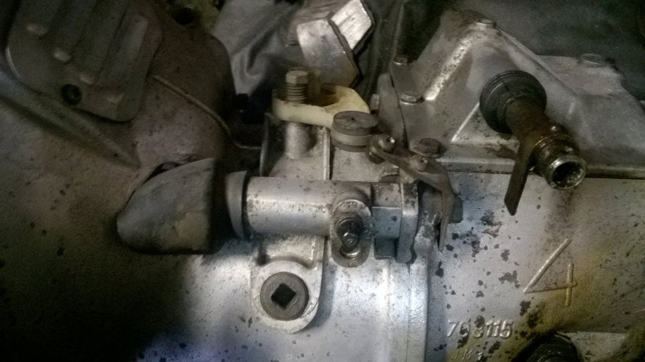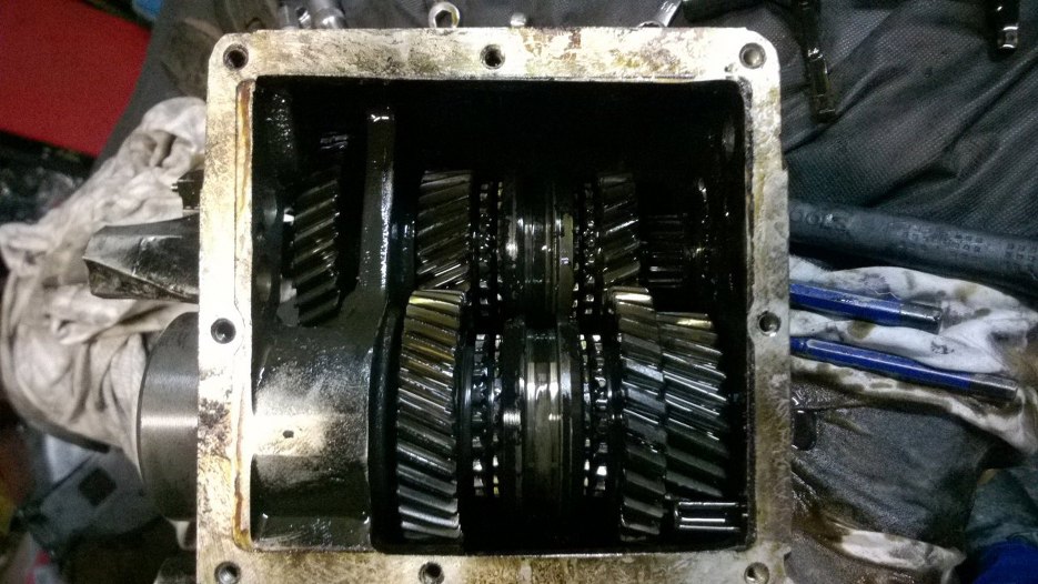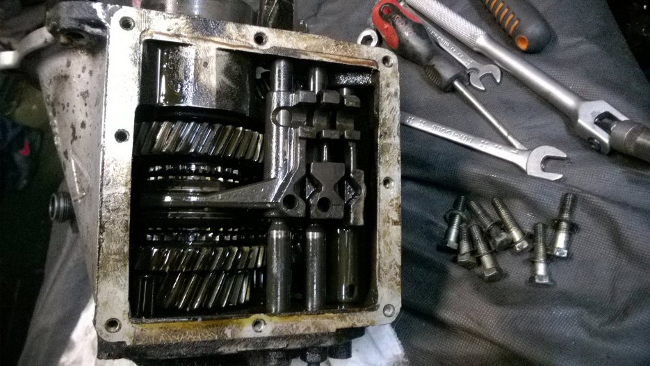 I skrzynia w środku Widać wodziki, którymi porusza wybierak. Koła zębate w niezłym stanie, ale brudne.