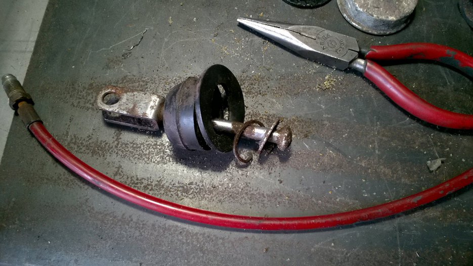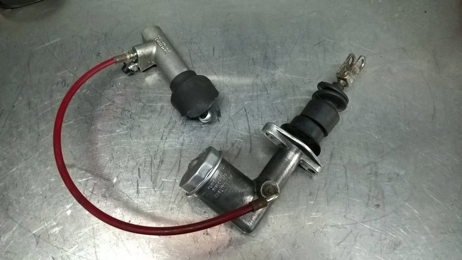 Gotowy komplet pompki i wysprzęglika, przykręciłem też rurkę je łączącą. Rurka jest oryginalna, ocynkowane zostały jej końcówki.