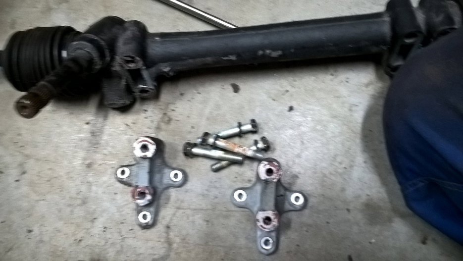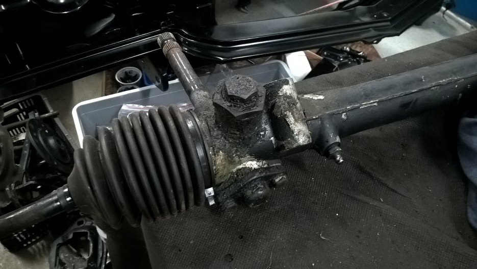 Od przekładni kierowniczej odkręciłem wsporniki ją mocujące w karoserii.