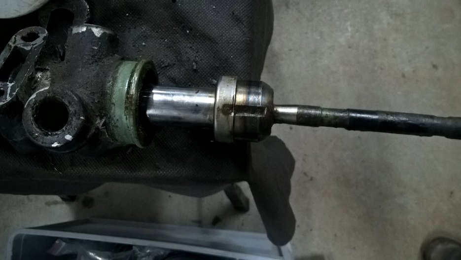 Tu łożyska już na miejscu, widać nowy smar. Pora na uszczelniacze.