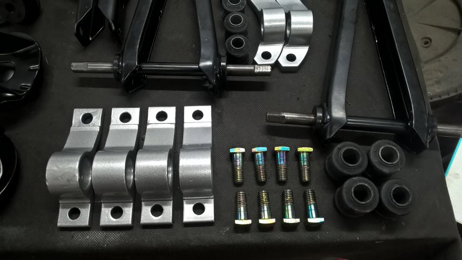 Wszystko przygotowane, pomalowane proszkowo, ocynkowane... Nowe gumy do wahaczy.