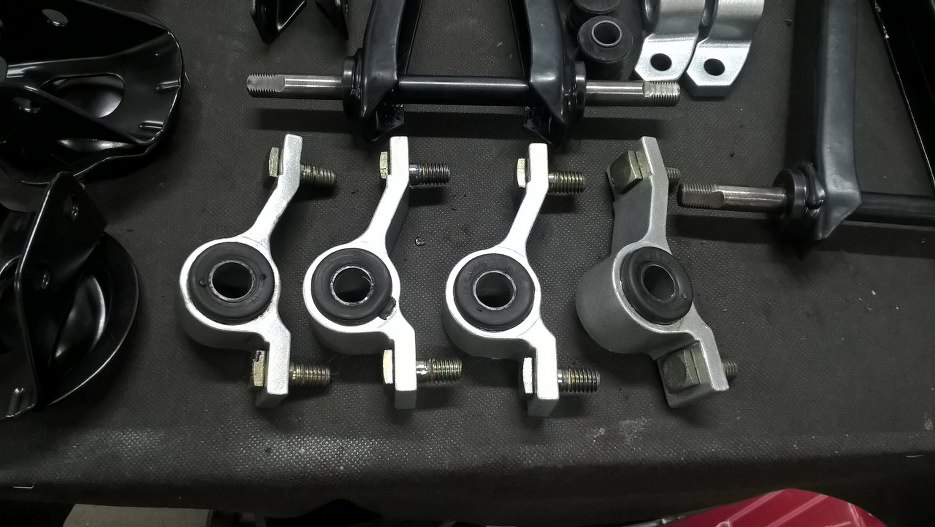 Najpierw złożyłem mocowania wahaczy dolnych.