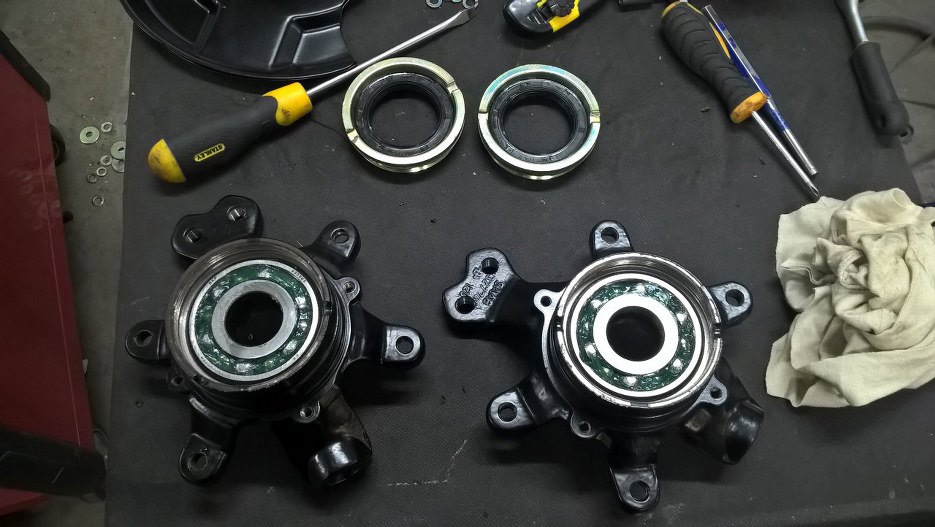 Łożyska wcisnąłem na prasie do zwrotnic.
