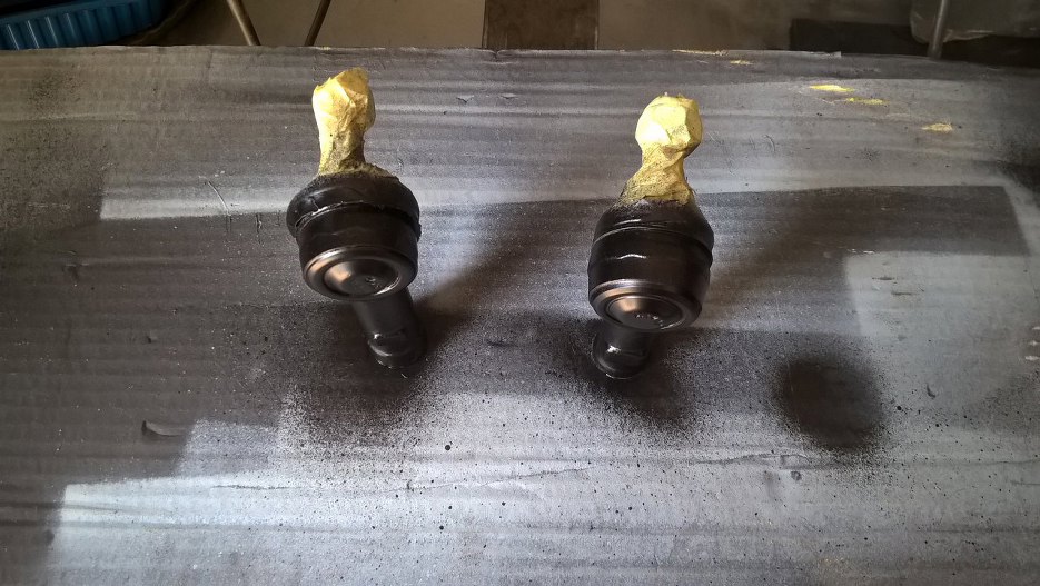 Następne będę zakładał drążki kierownicze. Trochę części jest do tego potrzebne. Drążki pomalowałem w tym miejscu, gdzie nie są osłonięte gumą.