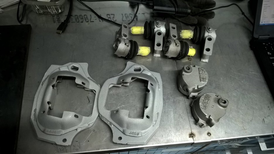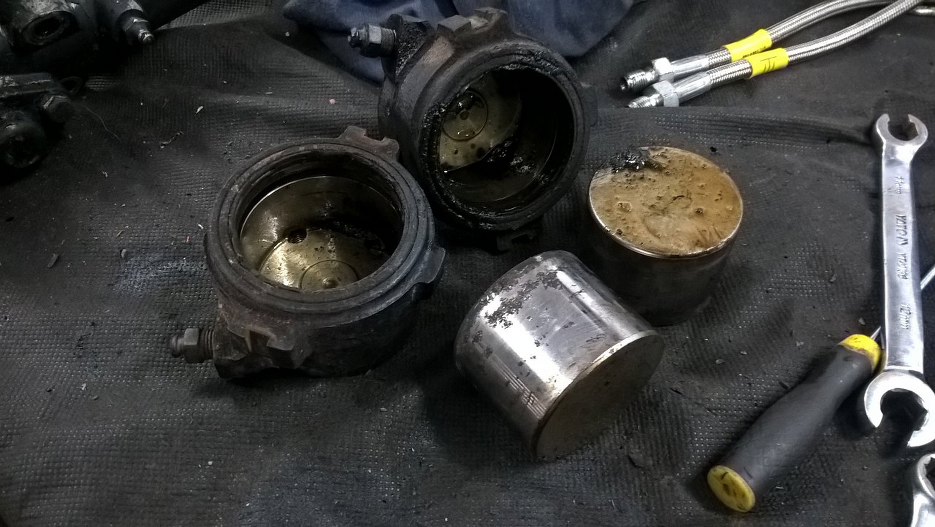 Obudowy tłoczków były wypiaskowane ze starymi tłoczkami w środku, żeby nie popsuć gładzi.