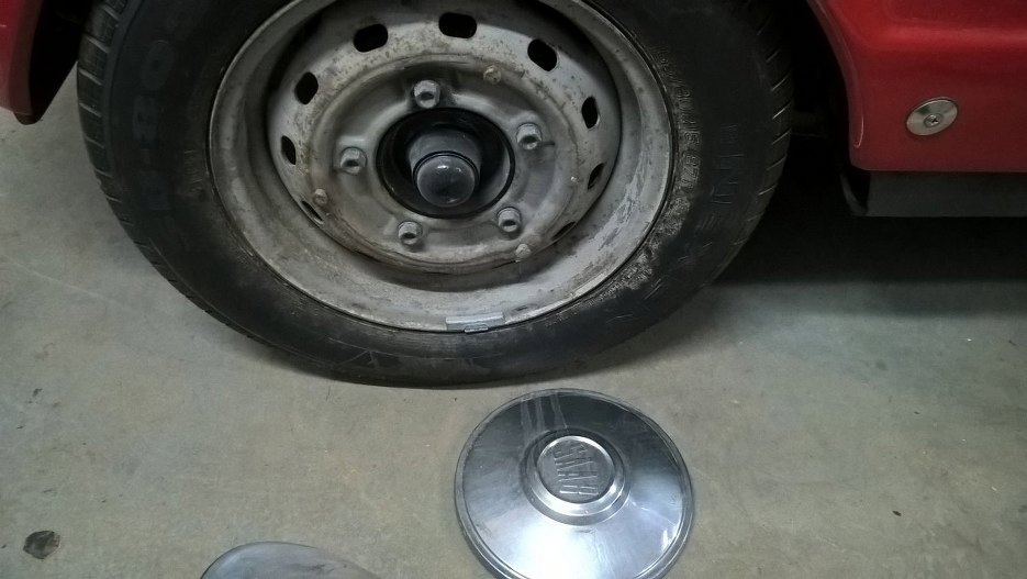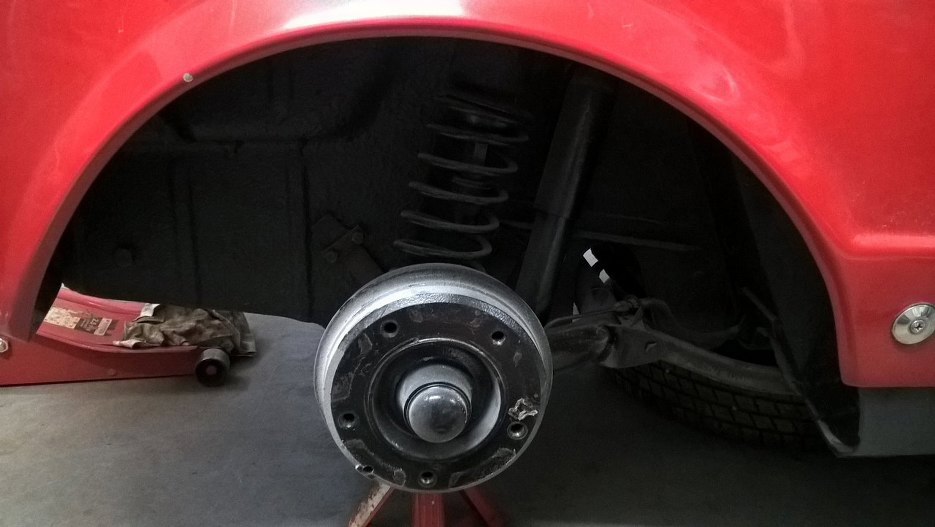 Kontunuujmy zatem temat hamulców tylnych, skoro już udao mi się dostać do rurek z tyłu auta. Teraz zajrzyjmy do tylnych bębnów. Zacznijmy od zdjęcia koła.