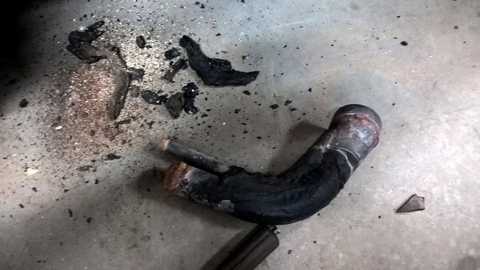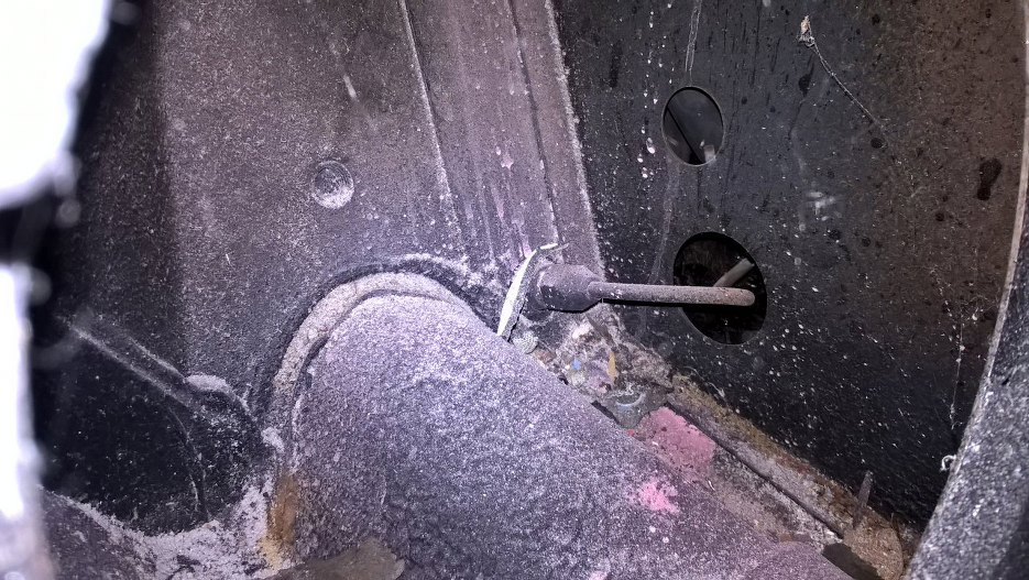 Zanim zabrałem się dalej za hamulce, wyciągnąłem (nie bez trudów, ktoś to skleił gumą do uszczelniania spawów albo czymś podobnym) rurę wlewu paliwa z karoserii.