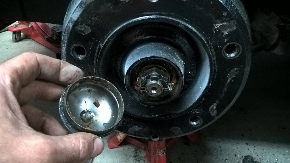 Dobra, dość gadania o jednostkach miar, zajrzyjmy wreszcie do bębnów hamulcowych. Zdjąłem kapselek piasty.