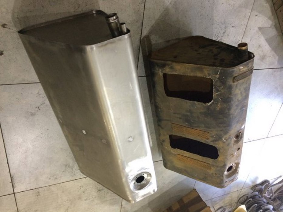 Dlatego sięgnąłem po bardzo niewiele droższy, ale za to najskuteczniejszy sposób. Poprosiłem znajomego blacharza o dorobienie nowego zbiornika. Miałem jeszcze do dyspozycji trzeci zbiornik paliwa, pozyczony od zaprzyjaźnionego mechanika od Saabów (i nie tylko). Chodziło o to, żeby pociąć zbiornik, którego nie szkoda, a tamtego nie było szkoda, bo miał kilka otworów, których producent nie przewidział. Na podstawie sekcji zwłok powstały szablony, a z nich gotowe części składowe nowego zbiornika.