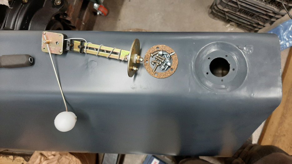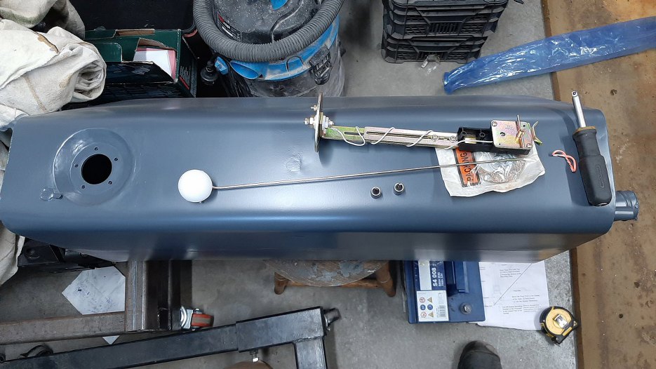 Potem znalazłem najbardziej zbliżony do oryginalnego RAL jaki się dało. Wcześniej też znalazłem w Stanach (Tanks Inc.) nowe czujniki poziomu paliwa. Fajne jest to, że robią je w różnych wersjach - z opornością różną dla różnych wskaźników używanych w autach. Minus jest taki, że oryginalny czujnik miał jeszcze wyjście na lampkę rezerwy. Ten nie ma, ale ma inną zaletę - działa :).