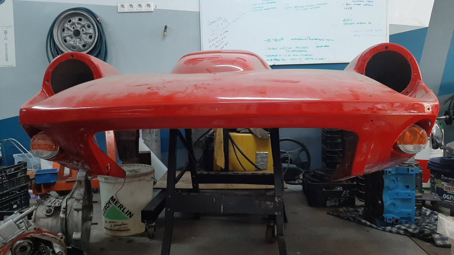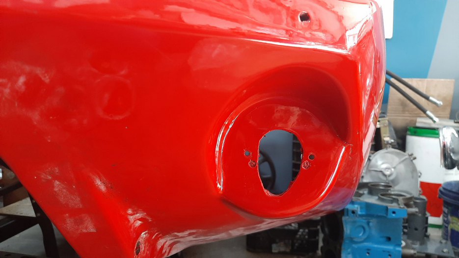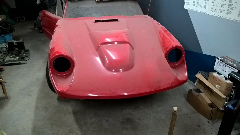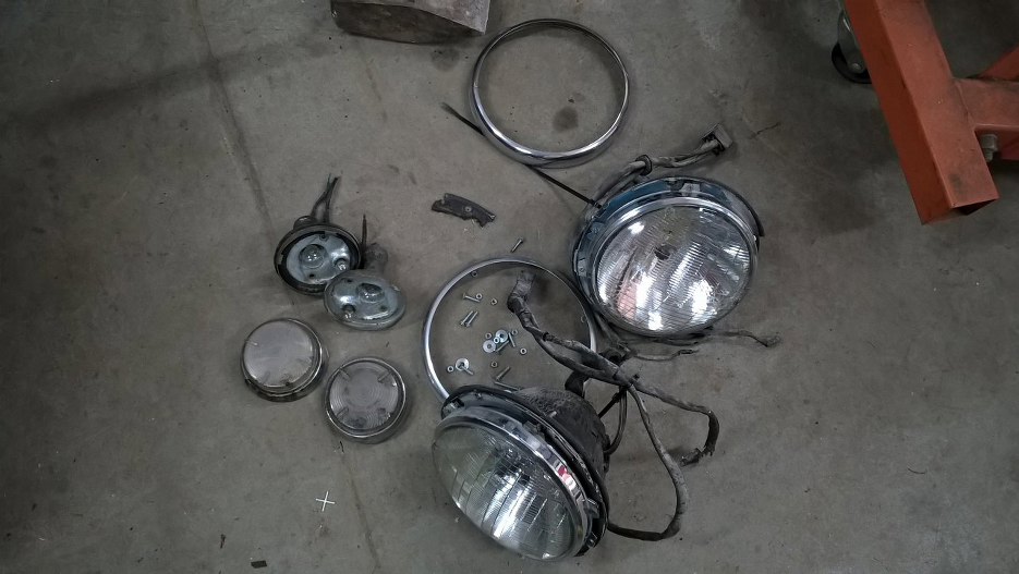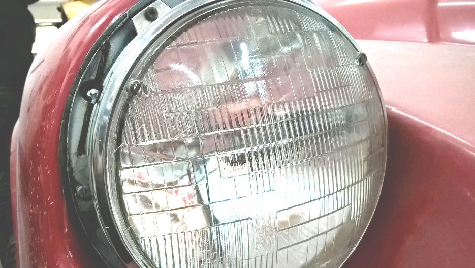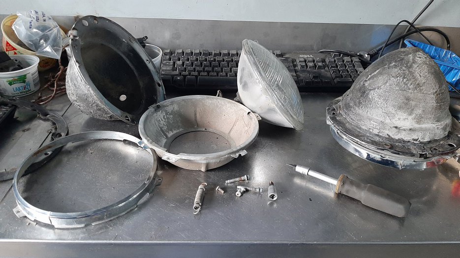 Równolegle z innymi rzeczami zacząłem zajmować się tez przednimi lampami. Oczywiście auto zostało dostarczone przez poprzedni warsztat jako gotowe do włożenia silnika i wręcz do jazdy... Tak wyglądają zamontowane przez nich po lakierowaniu auta lampy.