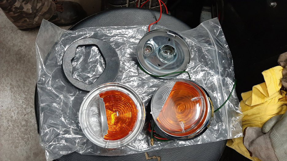 Stare lampki były w tak przeciętnym stanie, że kupione zostały nowe. O tyle fajnie, że od razu z pomarańczowym kierunkowskazem. Tamte były amerykańskie :).