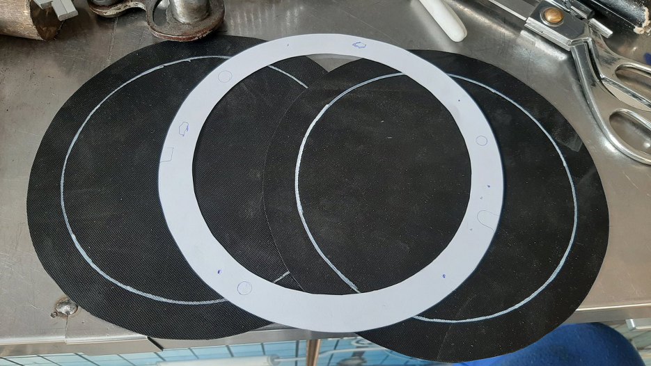 Z lampami przednimi było nieco więcej zachodu. Pewnie te gumy są dość łatwo dostępne od innych aut, ale nie mogłem ich szybko mieć na miejscu, więc dorobiłem je. Tu widać szablon i początek wycinanek.