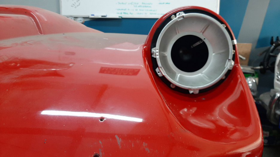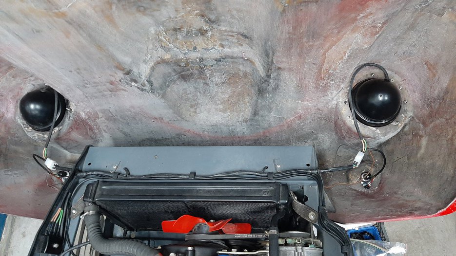 Maska była zdjęta, żeby w komorze silnika było łatwiej elektrykowi wiązki rzeźbić. Przyniosłem ją na stolik warsztatowy.