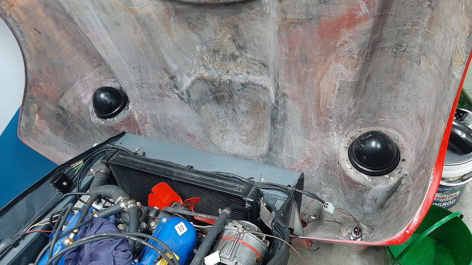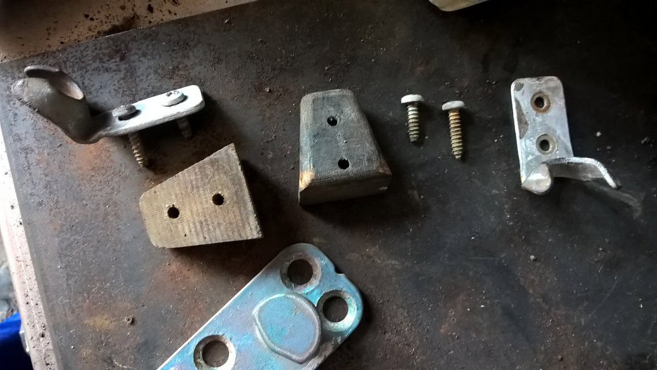 Tymczasem przy masce były przykręcone inne, na zdjęciu widoczne po lewej. No i nie miały przykręconych od wewnątrz maski tych kawałków drewna, które służą do ustalenia położenia maski na karoserii. W karoserii są wspawane blaszki, w które wpadają te kliny.