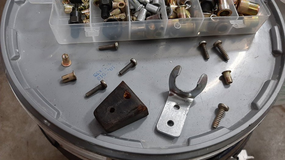 W końcu się lekko zirytowałem, nawierciłem drewienka, włożyłem w nie nitonakrętki na odwrót i przykręciłem śrubami, nie wkrętami. I się trzyma.