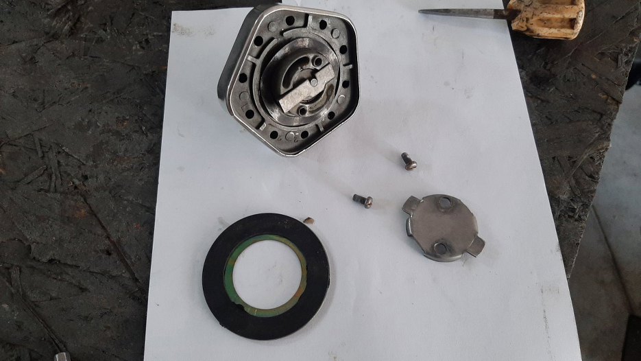 Stara uszczelka to była zawulkanizowana guma na stalowej blaszce, ja po prostu przykleiłem gumę na tą blaszkę. Potem mogłem zmontować korek paliwa.
