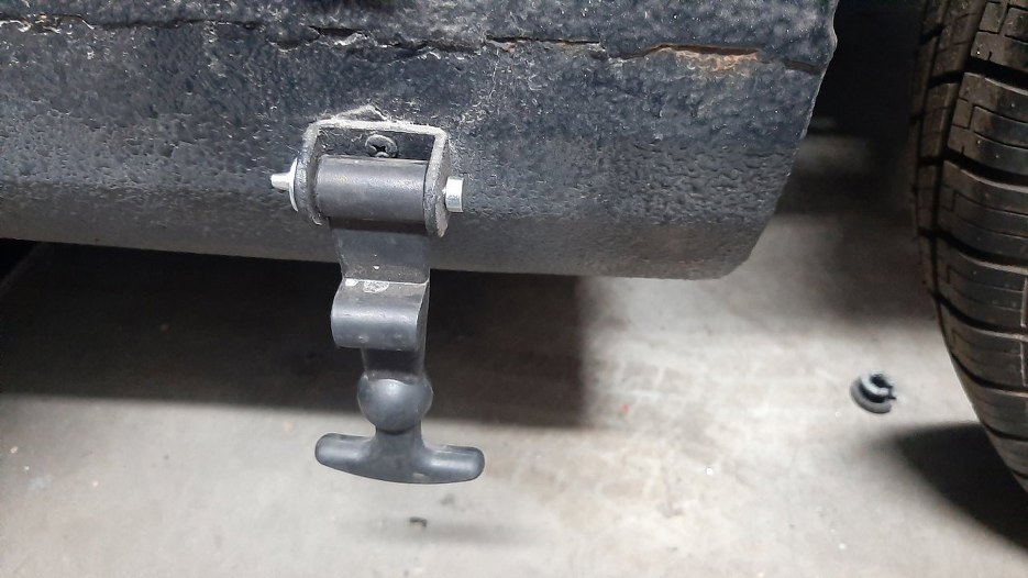 Tak wyglądały zapięcia maski zdjęte z samochodu. Zdejmował je ktoś, kto lakierował auto. Założone były nowe, gdzie gumowe części były takie same lub bardzo zbliżone, ale metalowe części były dość inne.