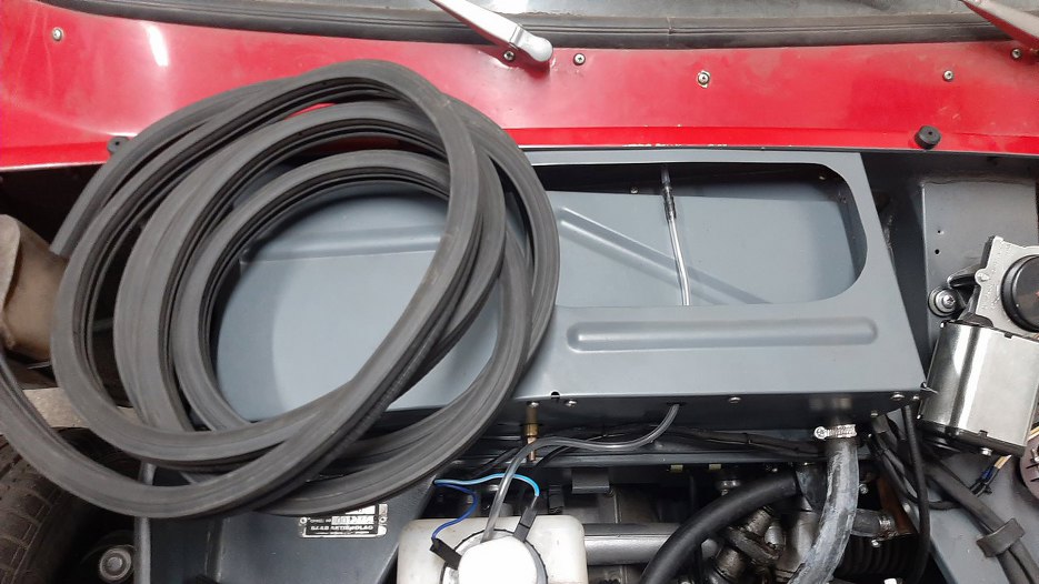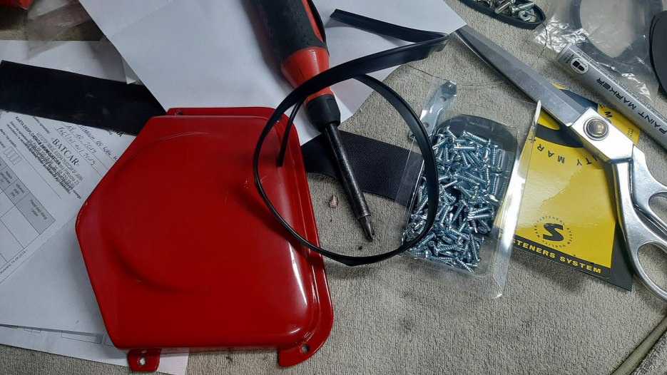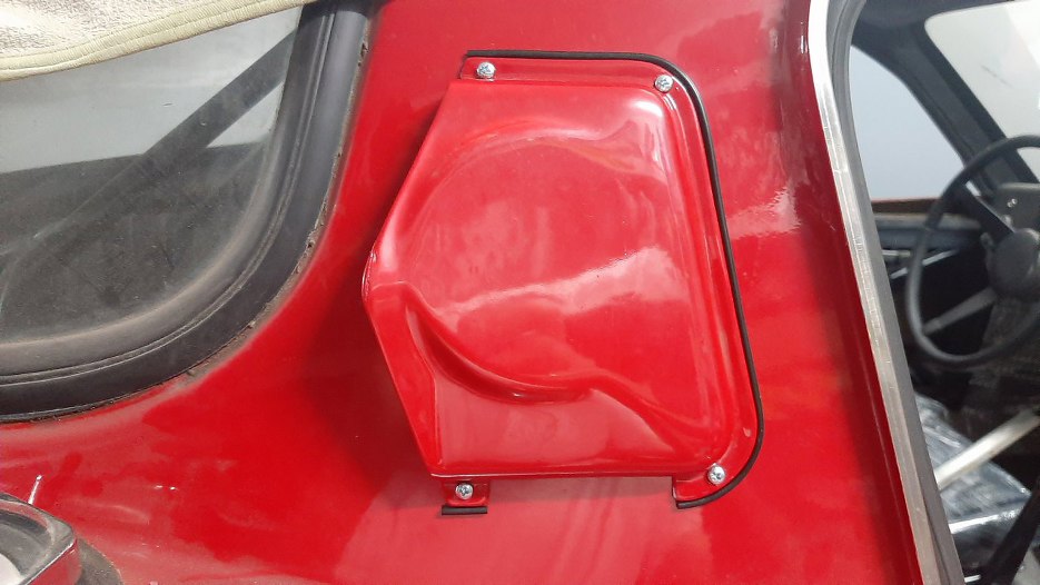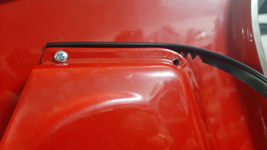 Odkręciłem też jakiś czas temu te uszy, czyli osłonki wywietrzników kabiny. Przykręcone były na wkręty, które były zardzewiałe, a potem pomalowane na czerwono. Wkręty już się nie nadawały nawet do odświeżenia, więc kupiłem nowe. Do kompletu będzie nowa uszczeleczka.