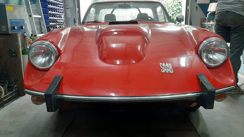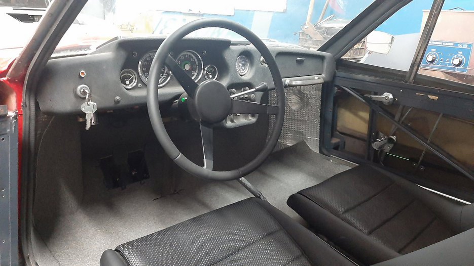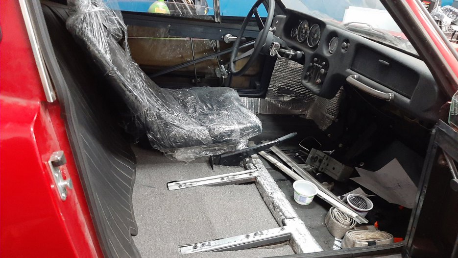 Po poprawce sprzęgła zrobiliśmy jazdę próbną. Do poprawy jeszcze była dźwignia zmiany biegów, bo nie wszystkie biegi udało nam się wrzucić. Po poprawce Sonett już jeździ. Wnętrze wygląda póki co tak: