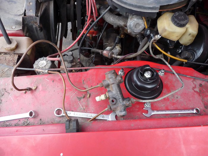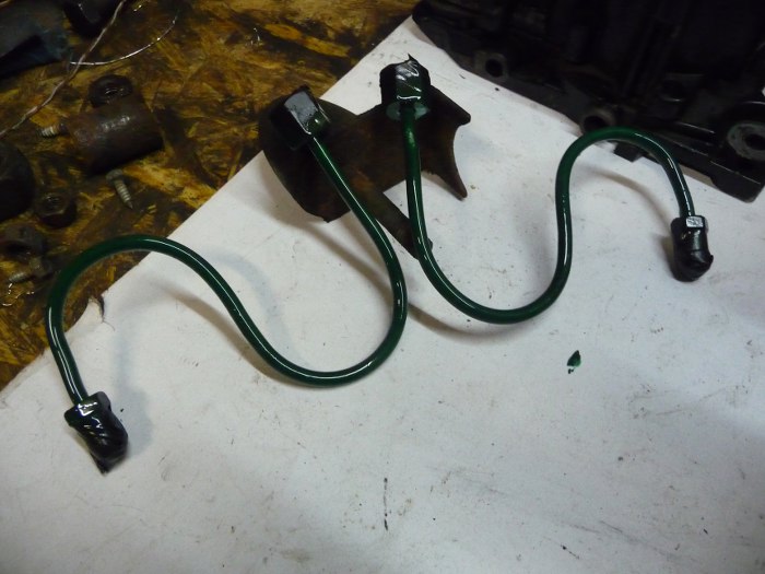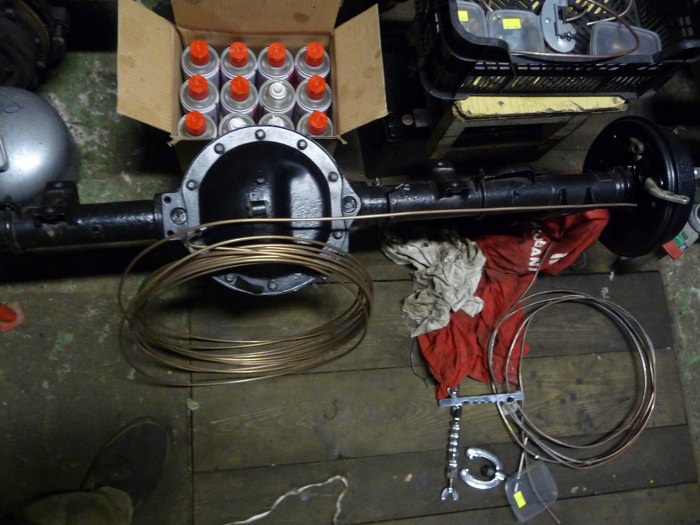 Stary układ hamulcowy był zrobiony na rurkach miedzianych, w większości mocno krzywo powyginanych, część była załamana, jedna urwana... jakoś nie budził mojego zaufania. Stwierdziłem, że jak mam wziąć za to odpowiedzialność, to muszę to zbudować od nowa.