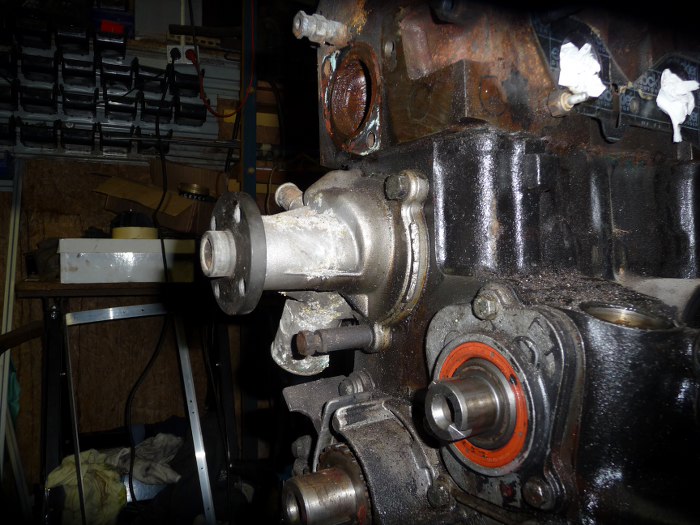 Zdjęta obudowa termostatu i aparat zapłonowy. Widać stan czystości silnika. To oczywiście musi się zmienić.