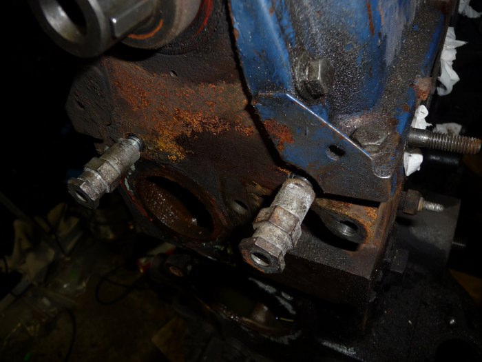 Mocowania pokrywy rozrządu. Wszystkie śrubki zostaną ocynkowane. Pokrywa zaworów jest przykręcona na śrubki z okrągłymi podkładkami, wydaje mi się, że powinny tu być inne podkładki. Potem jeszcze Michał zdjął pokrywę zaworów i przygotował część rzeczy do piaskowania.