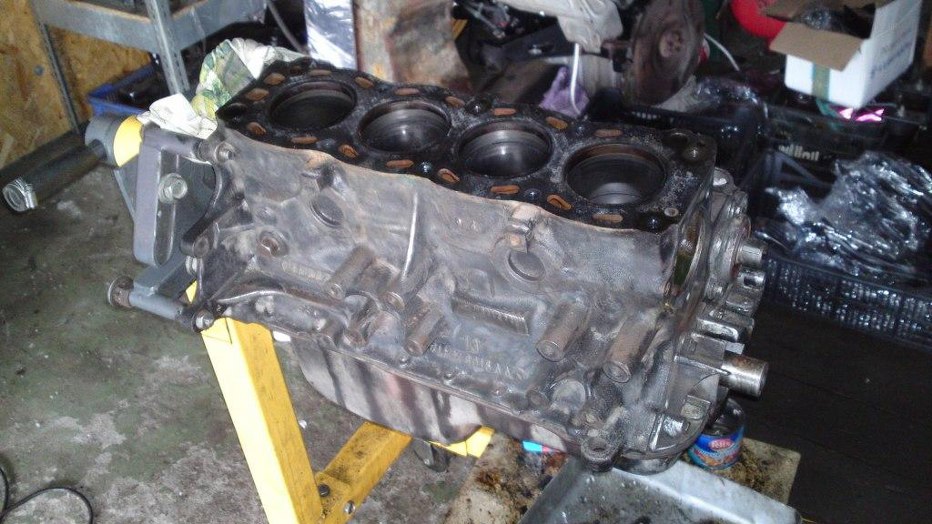 Po zdjęciu większości dokręcanych do bloku rzeczy Michał się wziął za czyszczenie. Nie ma to jak szczotka druciana na szlifierce kątowej...