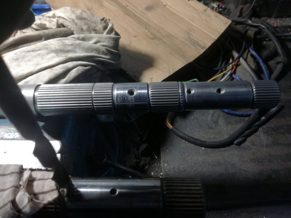 Wiesz też, że odczuwałem potrzebę zakupu lepszego wałka głównego - tu widać, poza uszkodzeniem, różnicę w obróbce otworów prowadzących olej do bębnów z pompy. Postanowiłem je trochę poprawić.